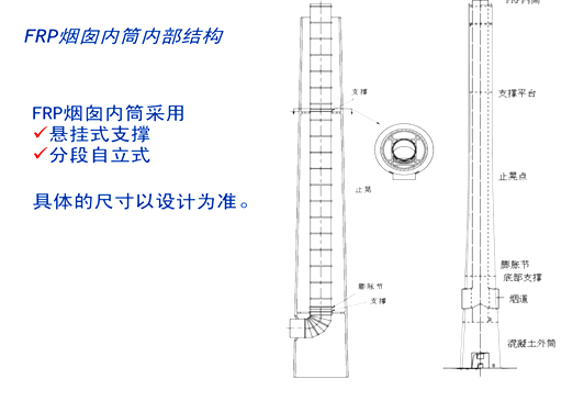 FRP煙囪內(nèi)筒采用懸掛式支撐和分段自立式兩種方式。